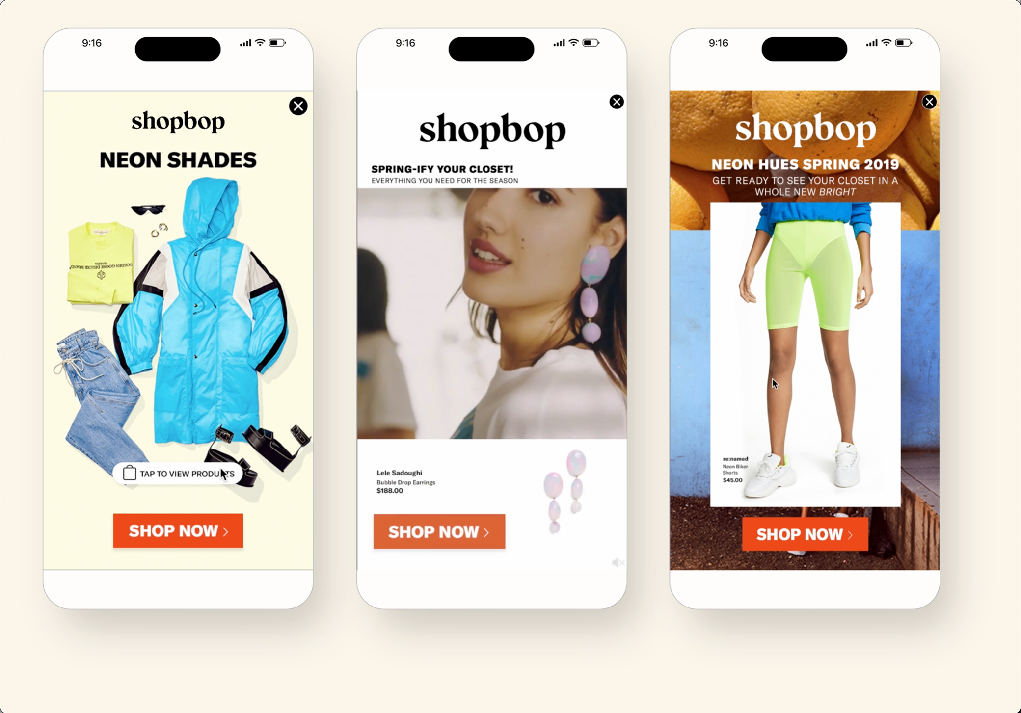 This project reinforced how much I enjoy working with fashion brands and how important it is to blend creative ambition with practical performance goals. Shopbop’s strong identity gave me a lot to play with, and the creative freedom they offered made the process genuinely fun and inspiring. This project was a great example of blending high fashion aesthetics with interactive performance design. We gave Shopbop a polished set of creatives that looked like an extension of their brand, and helped meet customers wherever they were in the conversion funnel.