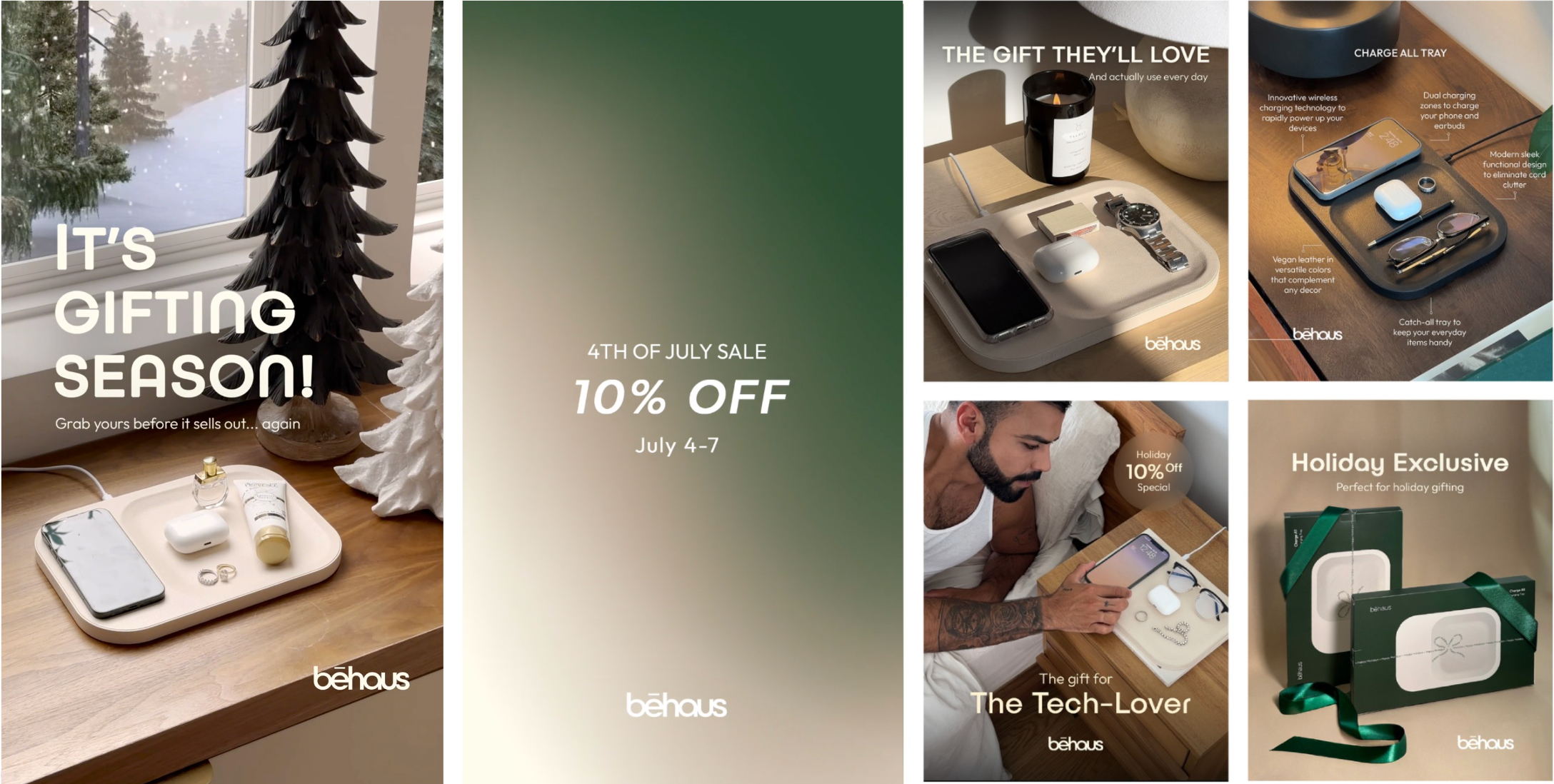 Seasonal storytelling played a key role in connecting the product to real-life moments. Holiday campaigns, around Christmas and Valentine’s day, positioned Bēhaus as a thoughtful, design-forward gift, embedding the product within meaningful domestic rituals.
