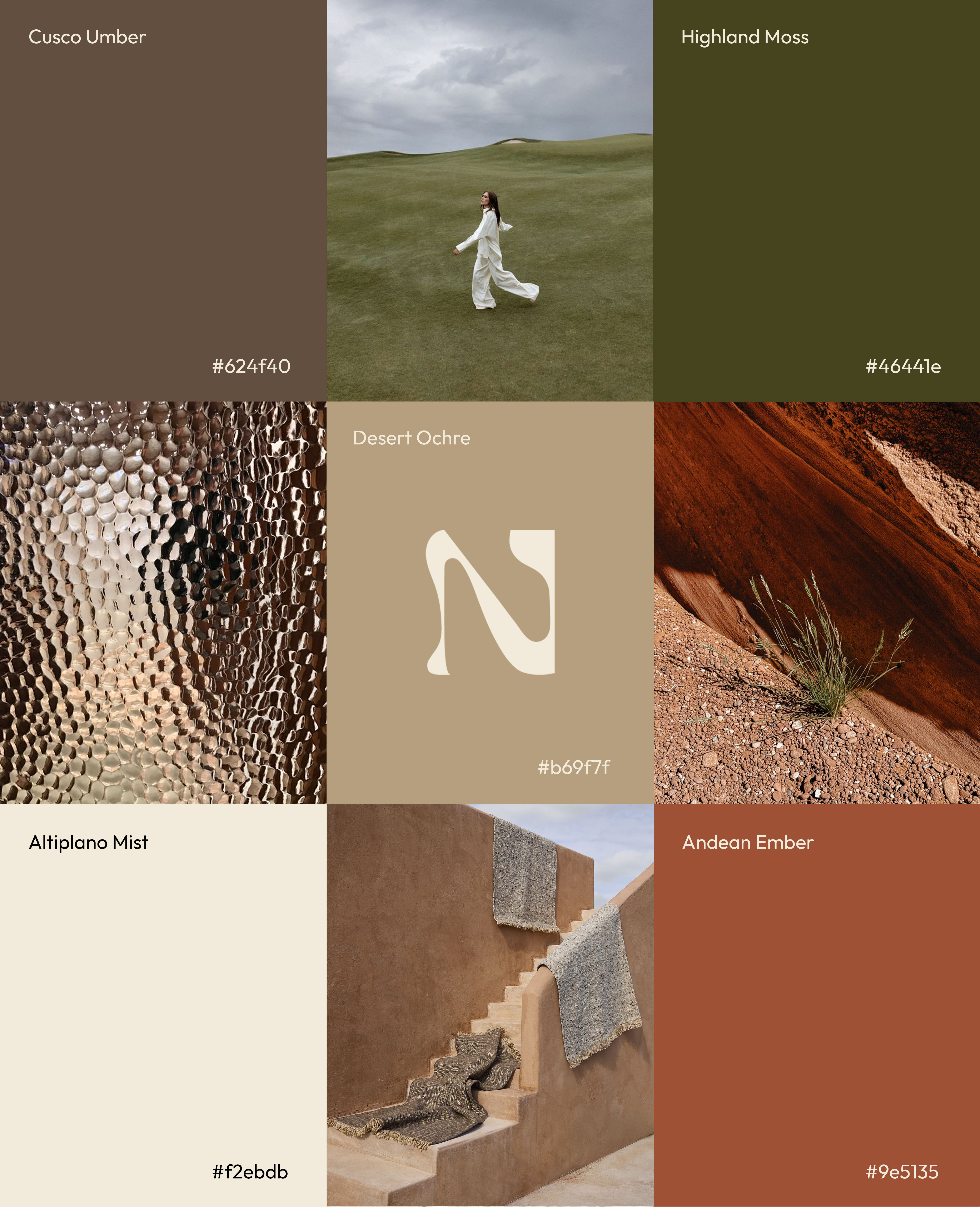The visual world draws from Andean landscapes, mineral earth tones, coastal mist, and weathered architectural surfaces, translating Peru’s natural palette into a restrained luxury language. Shades like Cusco Umber, Highland Moss, Desert Ochre, Altiplano Mist, and Andean Ember create a chromatic system that feels both grounded and elevated, reinforcing the tactile depth of the collection.